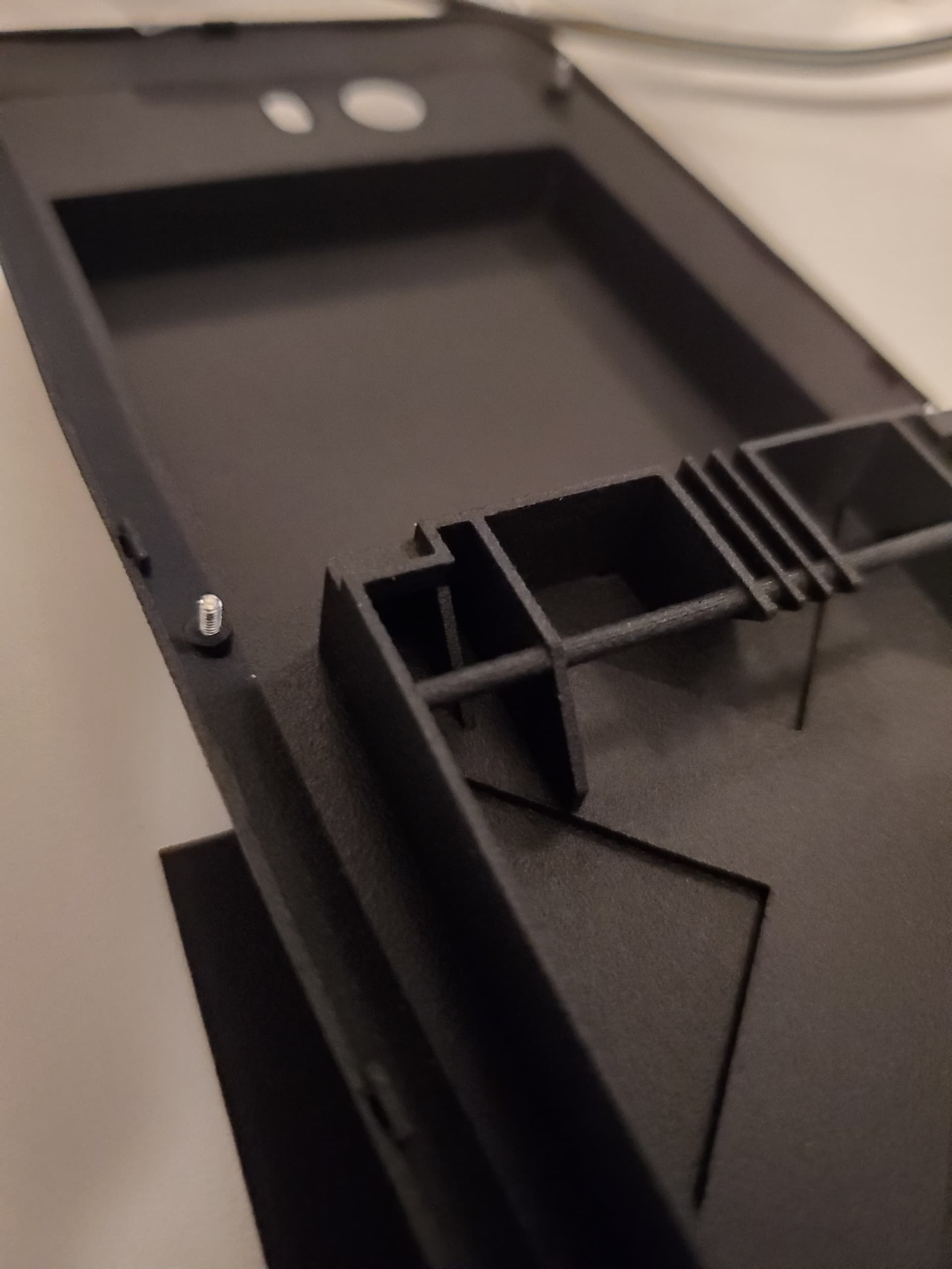 The screws used originally to hold the Librem 5 back frame on were repurposed here to attach the big battery house over top. For the most part the Librem 5 screws have become stuck in the 3d print which is fine when it is in use but if I wanted to go back to a single battery configuration, that is very difficult because I have not managed to remove the screws from the 3D print to put them back. I also lost one of these 6 screws while interacting with this.