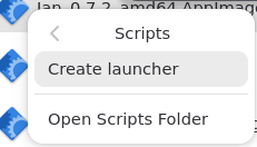 ./install.sh - Open Gnome Files app and right click on any AppImage file, then select Scripts => Create Launcher