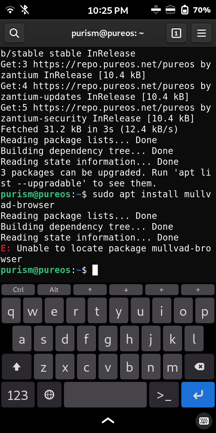 novice user trying to install mullvad browser on librem 5 from repositories from their official web page. it says unable to locate package. is the browser compatible with lib