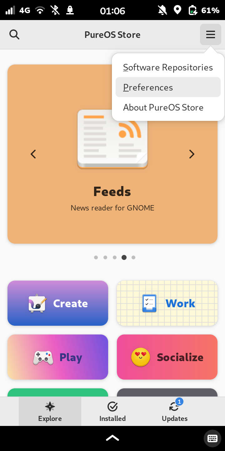 Found it, thanks. I would have never known to look at the Hamburger icon of the PureOS store.