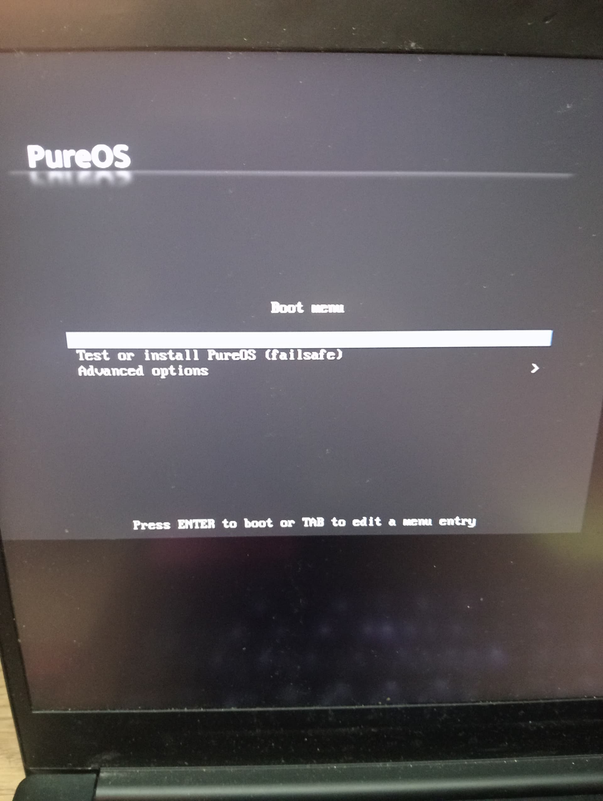 But make sure, in all that, that after you choose “Test or Install PureOS”, you don’t actually go ahead and install PureOS using the Calamares installer.