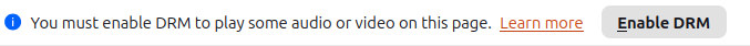 Looks as if I don’t have Google Widevine installed at all in Firefox. I guess I always said “NO” for the occasional web site that wants to play DRM. I think the prompt is: